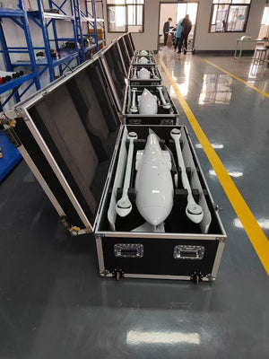 SKYWING YF26E is a pure electric vertical take-off and landing(VTOL) fixed-wing UAV which adopts a composite aerodynamic layout of quad-rotors and fixed wings, combines the advantages of VTOL of the quad-rotors models and the long range of the fixed-wing models.Flexible and can adapt to various complex take-off and landing conditions.